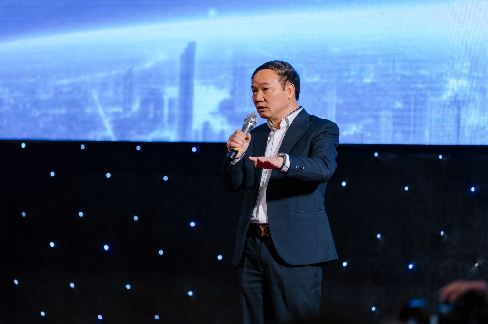 Không đi sâu vào kỹ thuật khô cứng, bài thuyết trình được mở ra bằng một thông điệp giàu tính nhân văn: Trí tuệ nhân tạo không phải để thay thế con người, mà để giải phóng con người. Giải phóng khỏi những công việc lặp lại, nặng nề, tốn thời gian; để con người được tập trung vào tư duy, sáng tạo, ra quyết định và phụng sự xã hội. Trong không gian hội trường lớn, hàng trăm sinh viên, giảng viên, doanh nhân đã lắng nghe một cách chăm chú, bởi những điều được nói đến không phải viễn cảnh xa xôi, mà là những ví dụ rất thật từ quản trị doanh nghiệp, điều hành hiệp hội, xây dựng chính sách và tổ chức đào tạo.