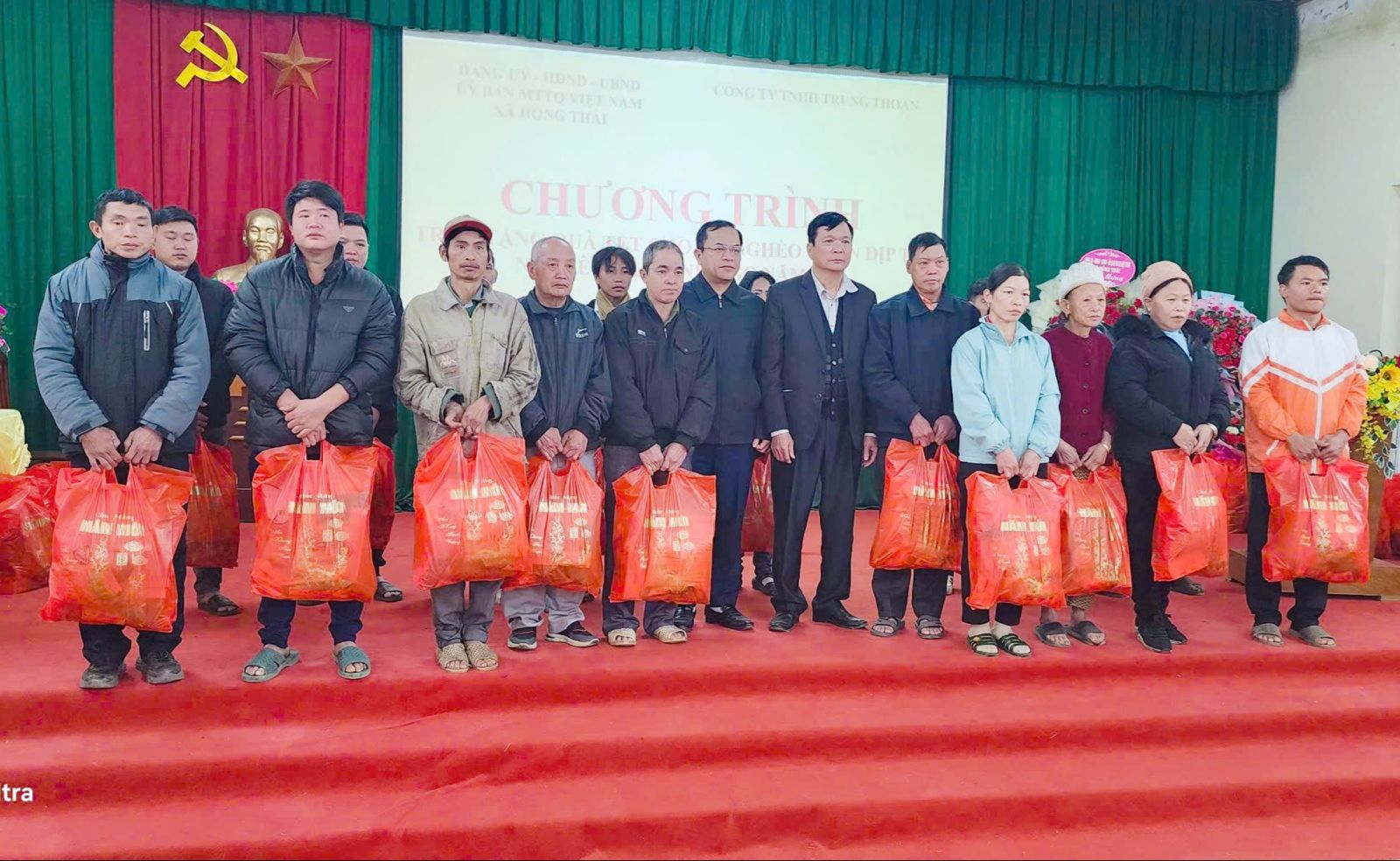 Đón Tết Nguyên đán Bính Ngọ, Doanh nhân Đỗ Trung Thoan, Phó Chủ tịch Hiệp hội Doanh nghiệp tỉnh, Chủ tịch Hội Doanh nghiệp khu vực Nà Hang, Giám đốc Công ty TNHH Trung Thoan đã trực tiếp vận chuyển và trao tặng 260 suất quà Tết, tổng trị giá gần 160 triệu đồng, tới đồng bào nghèo, gia đình chính sách có hoàn cảnh khó khăn tại các xã Nà Hang, Hồng Thái, Yên Hoa, Thượng Nông. Tham dự chương trình có đại diện cấp ủy, chính quyền, Mặt trận Tổ quốc và người dân các xã trong khu vực.