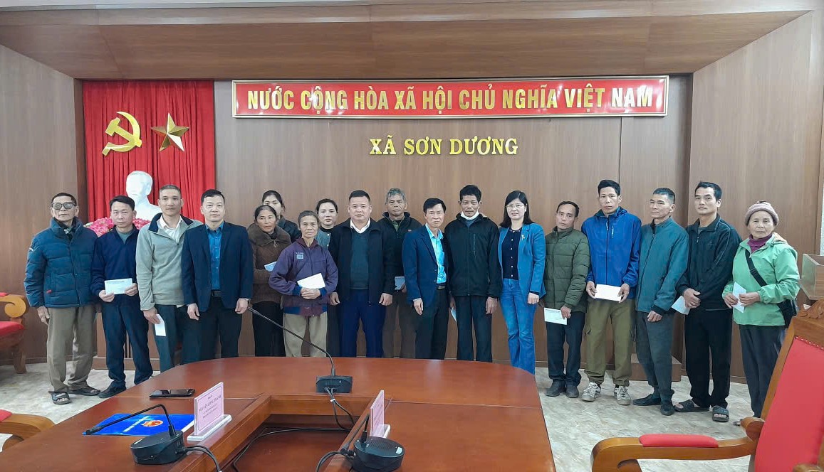 Tại trụ sở UBND xã Sơn Dương, Doanh nhân Vũ Văn Thịnh, Công ty TNHH Thịnh Hiền - Hội viên Hội Doanh nghiệp khu vực Sơn Dương đã trích từ quỹ phúc lợi của Công ty, trao tặng 20 suất quà Tết cho các hộ gia đình nghèo có hoàn cảnh khó khăn trên địa bàn xã, với tổng trị giá 20 triệu đồng.