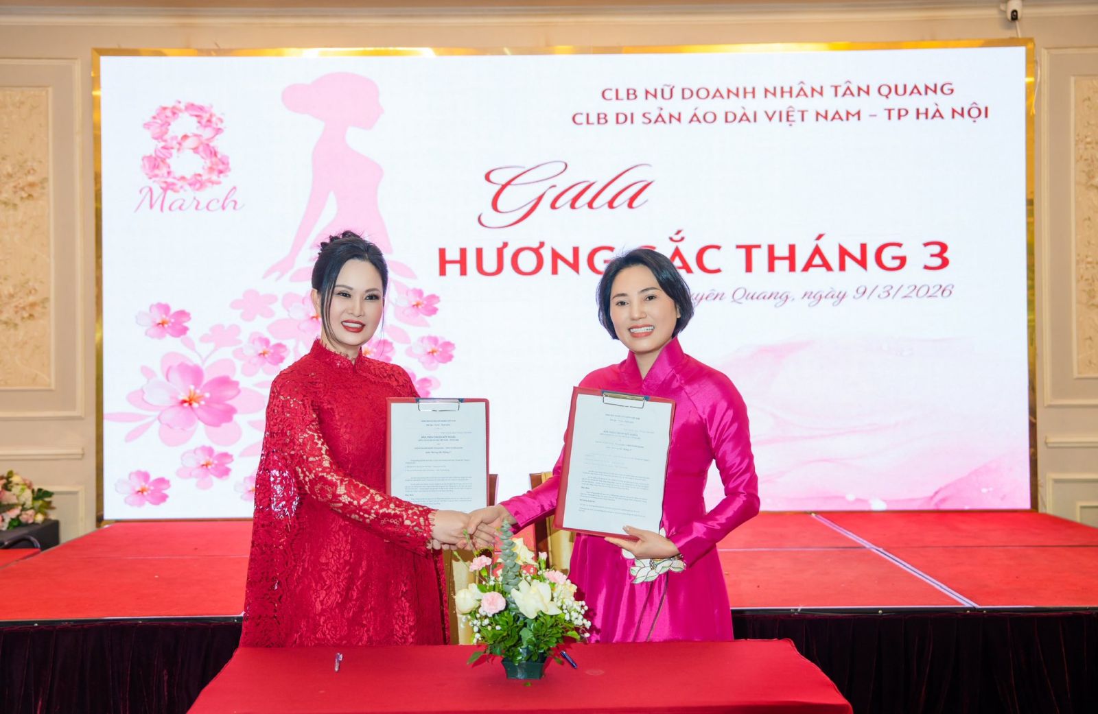 Mang theo sắc áo dài duyên dáng, sắc xuân tươi mới và những nụ cười rạng rỡ, chương trình Gala “Hương sắc tháng Ba” đã trở thành điểm hẹn ý nghĩa, gắn kết Câu lạc bộ Nữ Doanh nhân Tân Quang (tỉnh Tuyên Quang) với Câu lạc bộ Di sản Áo dài Việt Nam TP Hà Nội, lan tỏa những giá trị văn hóa truyền thống trong cộng đồng nữ doanh nhân.
