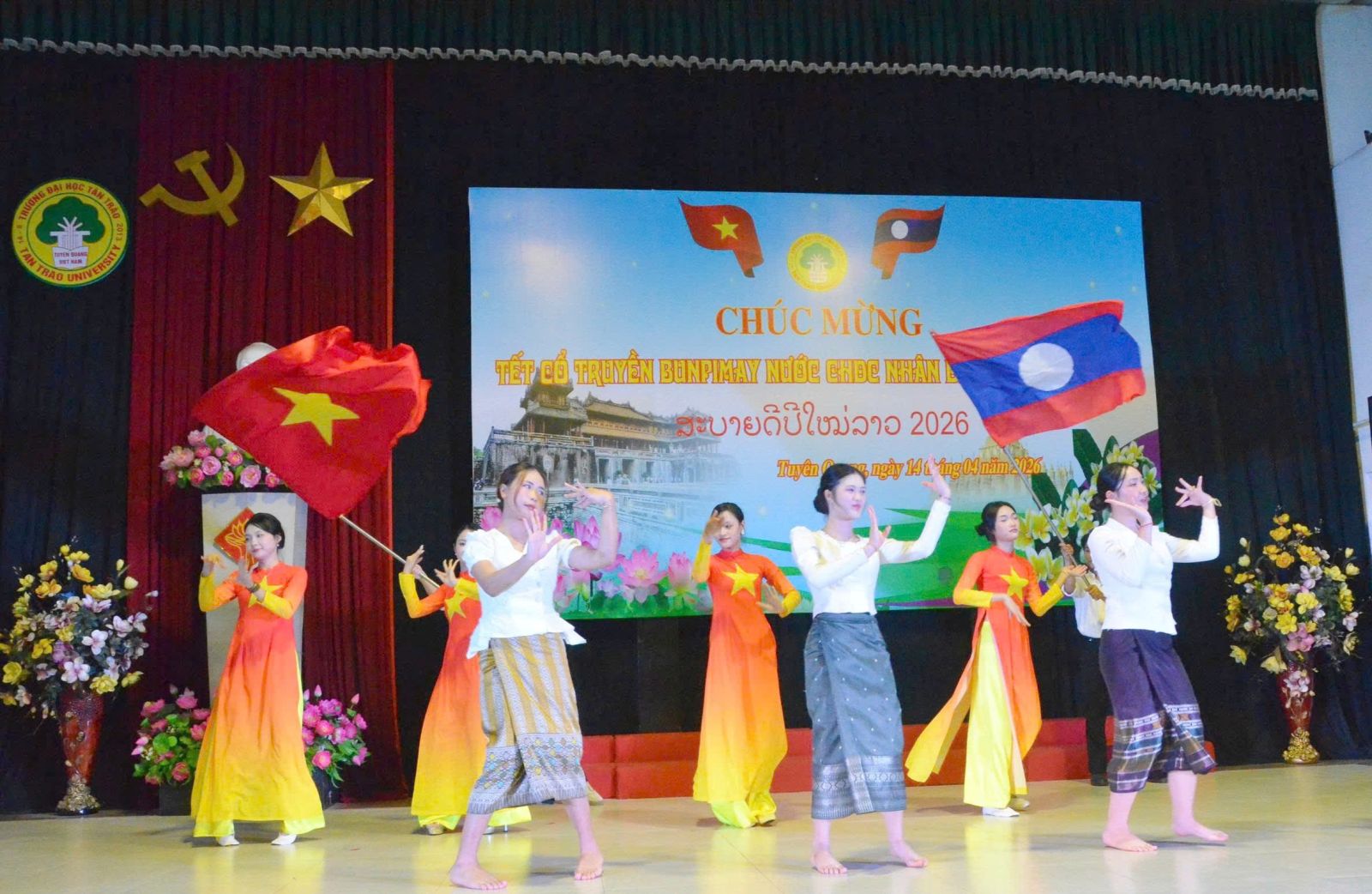 Hiệp hội Doanh nghiệp tỉnh Tuyên Quang vừa tham gia Chương trình chào mừng Tết Bunpimay do Trường Đại học Tân Trào tổ chức, đồng thời trao tặng nhiều phần quà ý nghĩa tới các lưu học sinh Lào đang học tập tại trường.