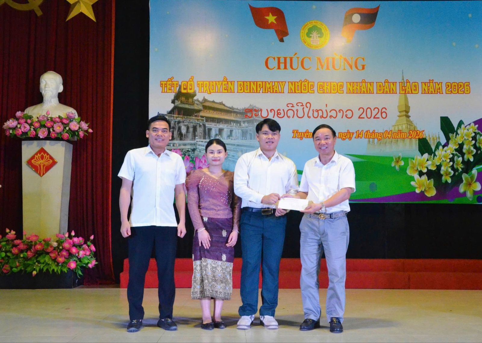 Cùng với các đơn vị trong tỉnh, Chủ tịch Hiệp hội đã trao quà và gửi lời chúc mừng năm mới tốt đẹp tới các lưu học sinh Lào. Những phần quà không chỉ mang ý nghĩa hỗ trợ vật chất mà còn là nguồn động viên tinh thần, thể hiện vai trò đồng hành của cộng đồng doanh nghiệp tỉnh đối với công tác đào tạo, chăm lo sinh viên của nhà trường.