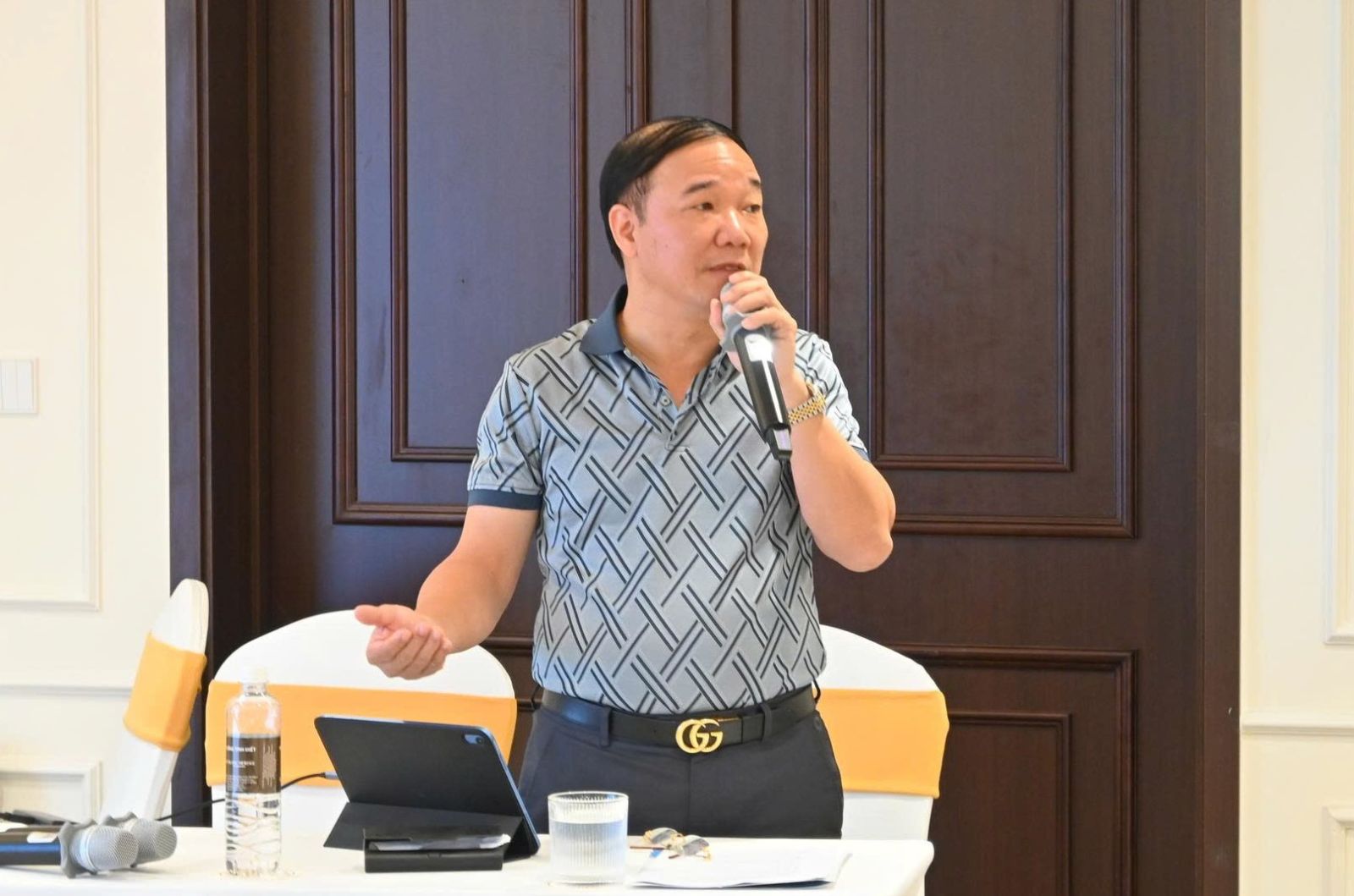 Đồng chí Nguyễn Hữu Thập, Uỷ viên BCH Liên đoàn Thương mại và Công nghiệp Việt Nam, Phó Chủ tịch Hiệp hội Pháp chế Doanh nghiệp Việt Nam, Chủ tịch HHDN tỉnh Tuyên Quang trực tiếp truyền đạt kiến thức AI tại lớp học.