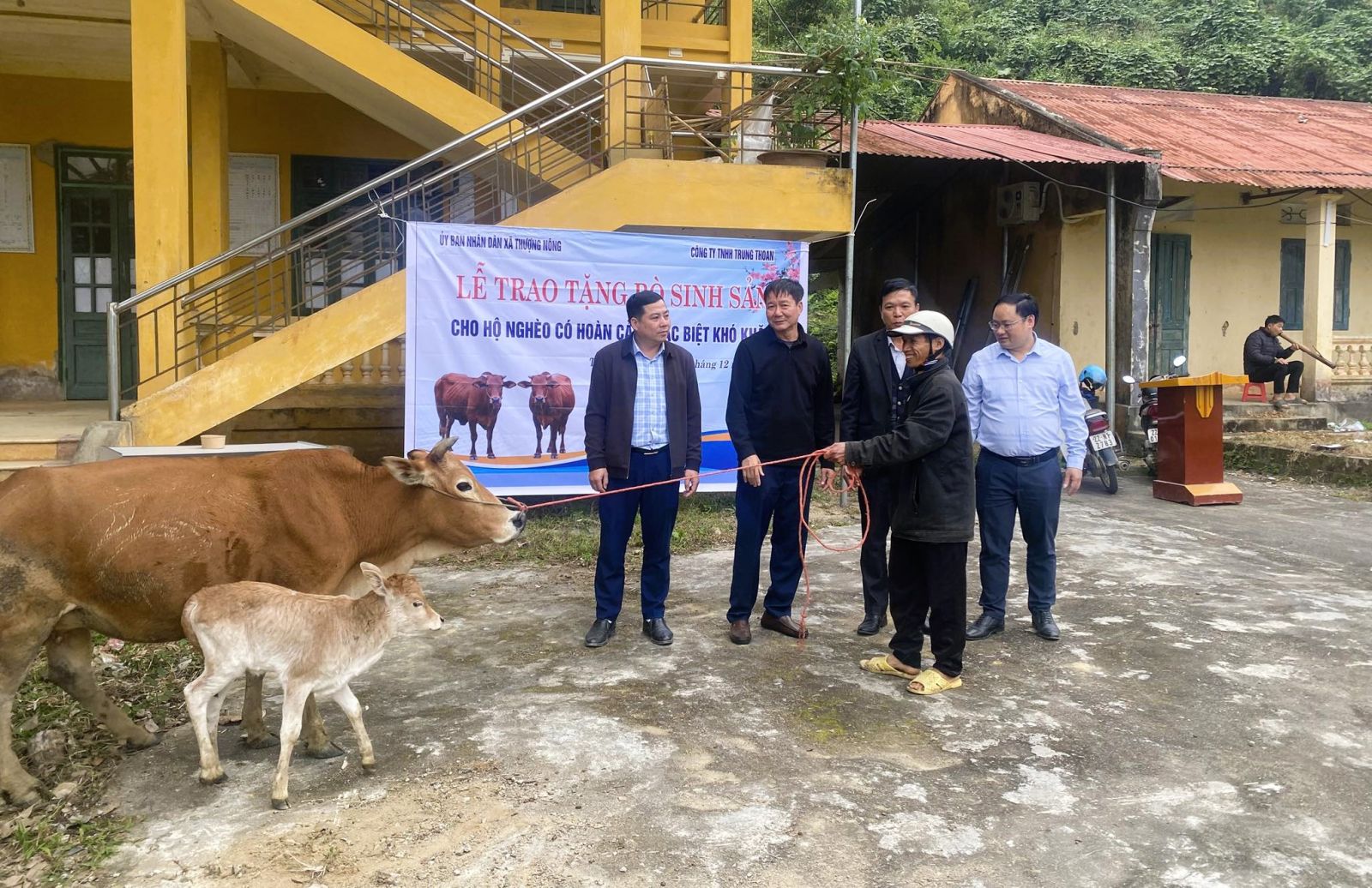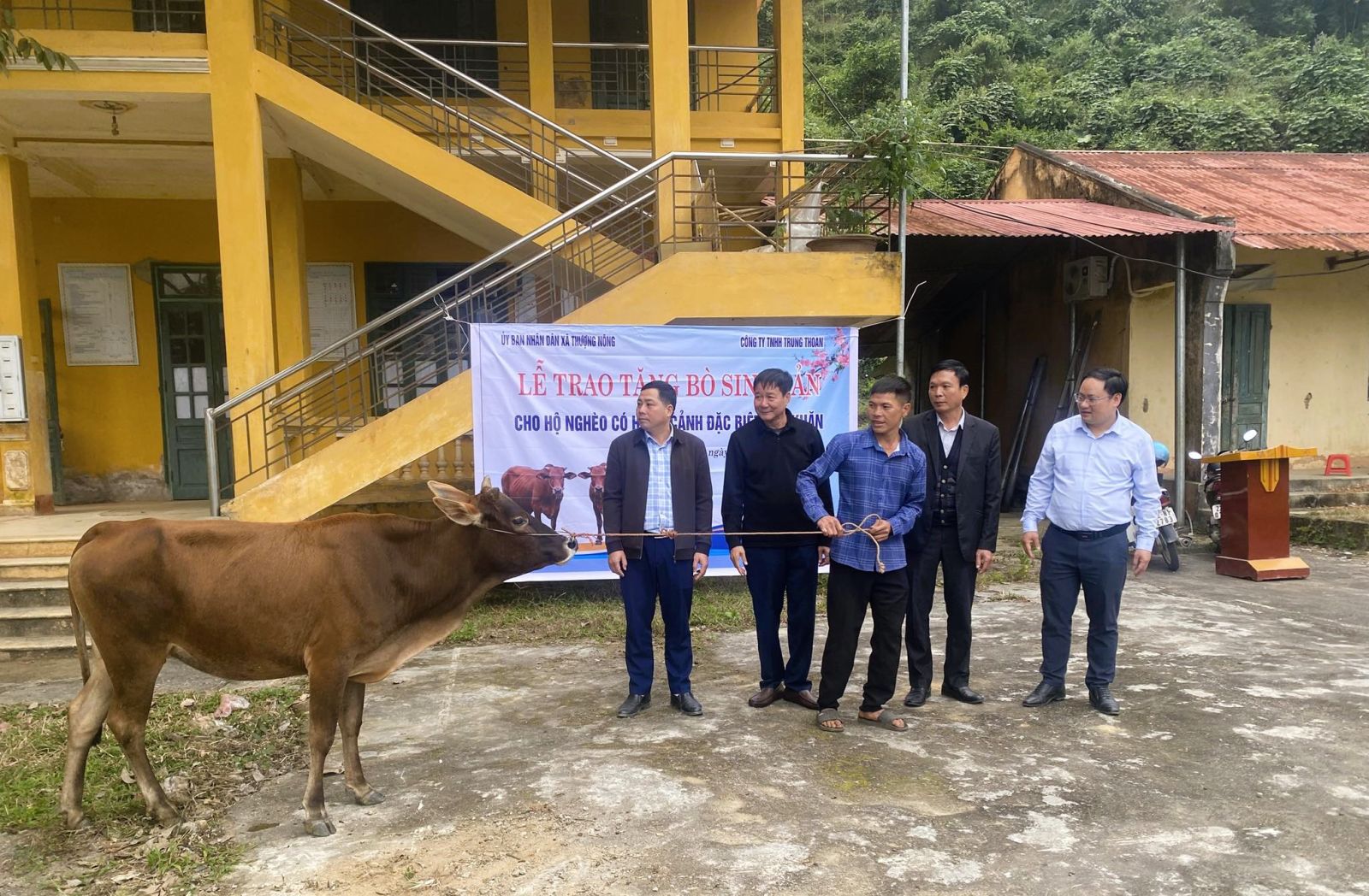 Trước sự chứng kiến của lãnh đạo Đảng ủy, UBND, Ủy ban MTTQ xã Thượng Nông, các trưởng thôn bản và đông đảo Nhân dân địa phương, Doanh nhân Đỗ Trung Thoan - Giám đốc Công ty TNHH Trung Thoan, Ủy viên Ban Thường vụ HHDN tỉnh, Chủ tịch Hội Doanh nghiệp khu vực Na Hang đã trực tiếp trao bò giống cho đại diện các hộ gia đình là đồng bào dân tộc thiểu số, gồm: Bà Đào Thị Phinh (thôn Nà Cao), ông Lý Văn Pềnh (thôn Bản Khẻ), ông Hoàng Văn Thu (thôn Nà Tà), ông Bàn Càn Ngài (thôn Thôm Luông) và bà Nguyễn Thị Phia (thôn Bản Vịt); mỗi hộ được hỗ trợ 01 cặp bò giống, trị giá 20 triệu đồng.