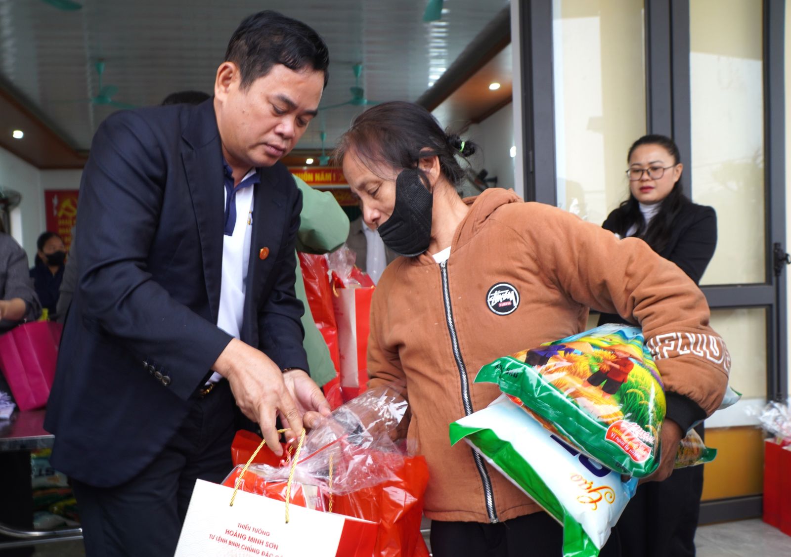 Cùng với đó, các Doanh nhân: Trần Văn Sơn, Tổng giám đốc Công ty CP Dịch vụ Công nghiệp Gia Đức (Thủy Nguyên, Hải Phòng); Huỳnh Văn Chiến, Chủ tịch HĐQT Công ty Phú Thành (Từ Liêm, Hà Nội); Đặng Trần Ngữ, Chủ tịch HĐQT Công ty Trường Xuân (Phú Lương Hà Nội) cũng đã trao tặng nhiều phần quà ý nghĩa. Trong đó, Công ty CP Gia Đức trao tặng 3 tấn gạo Tám thơm Nam Định, trị giá gần 100 triệu đồng, sẻ chia khó khăn với bà con Mỹ Lâm.