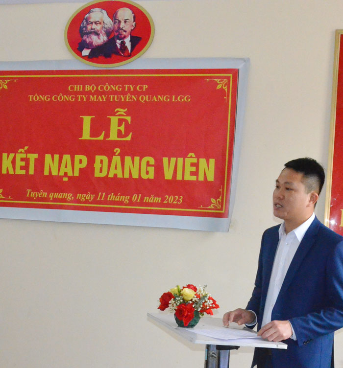 Phát biểu giao nhiệm vụ cho 10 đảng viên mới, đồng chí Nguyễn Văn Thư, Bí thư chi bộ, Tổng GĐ Công ty CP Tổng Công ty May Tuyên Quang LGG nêu rõ việc 10 quần chúng ưu tú được đứng trong hàng ngũ của Chi bộ Đảng Tổng GĐ Công ty CP Tổng Công ty May Tuyên Quang LGG là một vinh dự lớn, xong cũng là nhiệm vụ hết sức nặng nề. Đề nghị 10 đảng viên mới tiếp tục nỗ lực rèn luyện, tu dưỡng; hăng hái, nhiệt tình trong công tác; phát huy năng lực nhiều hơn nữa để góp phần cùng toàn Chi bộ phấn đấu hoàn thành tốt nhiệm vụ được giao. Đồng thời phân công nhiệm vụ cho đảng viên chính thức của chi bộ tiếp tục giúp đỡ, dìu dắt 10 đảng viên mới trong thời gian thử thách 12 tháng...