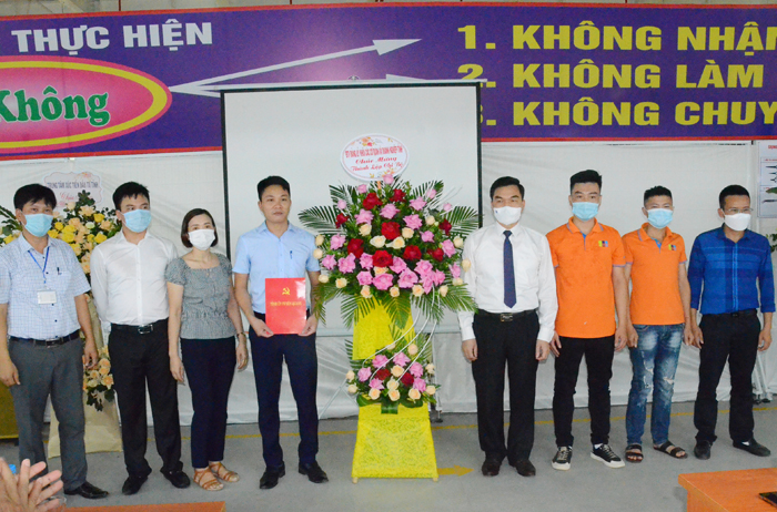 Tại lễ kết nạp, thay mặt Ban Chi ủy, đồng chí Nguyễn Văn Thư, Bí thư chi bộ, Tổng GĐ công ty đã đọc và trao Quyết định kết nạp đảng viên của Ban Thường vụ Đảng ủy Khối các Cơ quan &Doanh nghiệp tỉnh cho 10 quần chúng ưu tú, gồm: QUÁCH THỊ DUNG, nhân viên Phòng Kỹ thuật; TRẦN THỊ TUYỀN, Phó giám đốc sản xuất xí nghiệp 2; ĐẶNG THỊ HẠNH, Phó phòng Kế hoạch - thị trường; HOÀNG THỊ BÍCH THÙY, Tổ trưởng tổ 2 – Xí nghiệp 1; TRƯƠNG QUỐC CƯỜNG, Tổ phó tổ Cắt; ĐỖ THÀNH VÂN, nhân viên phòng Tổ chức hành chính; MAI VŨ KIM OANH, Nhóm trưởng KCS xí nghiệp 2; TRẦN THU THẢO, Phó phòng Kế hoạch - thị trường; PHÙNG THỊ HƯƠNG, Nhân viên Phòng QA; VŨ NGỌC HOÀNG – Nhân viên Phòng Kỹ thuật.