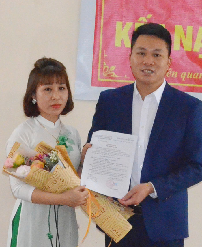 Đồng chí Nguyễn Văn Thư, Bí thư chi bộ, Tổng GĐ công ty trao Quyết định kết nạp đảng viên của Ban Thường vụ Đảng ủy Khối các Cơ quan &Doanh nghiệp tỉnh cho quần chúng ưu tú PHÙNG THỊ HƯƠNG, Nhân viên Phòng QA.