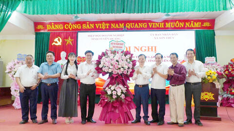 Chủ tịch HHDN tỉnh Nguyễn Hữu Thập cùng lãnh đạo Hiệp hội chúc mừng tân Giám đốc Bưu điện tỉnh Tuyên Quang Nghiêm Tuấn Anh