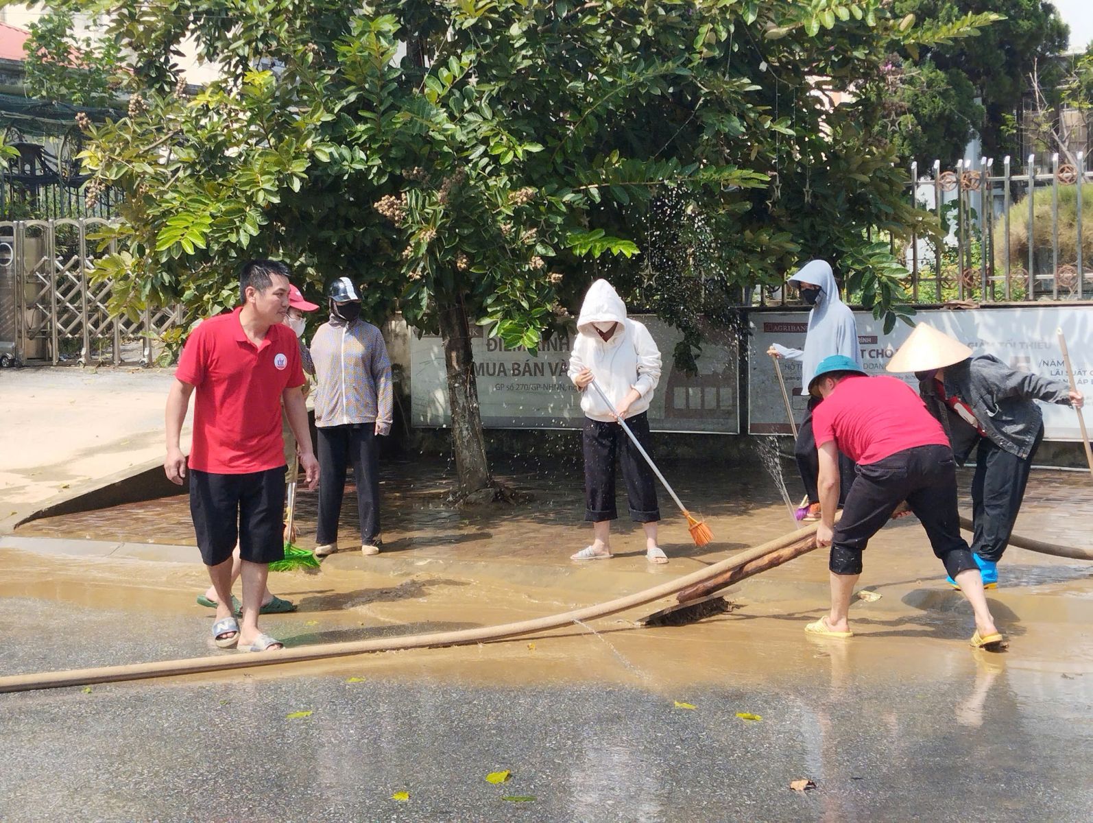 Trưa ngày 03/10, dưới ánh nắng chói chang, chứng kiến không khí lao động miệt mài, khẩn trương của các Doanh nghiệp và lực lượng hỗ trợ thu gom bùn rác, vệ sinh môi trường sau lũ, các đồng chí Đỗ Hùng Đức, Tỉnh uỷ viên, Bí thư Đảng uỷ phường Minh Xuân; Đỗ Đình Đạt, Phó Bí thư Đảng uỷ, Chủ tịch UBND phường An Tường đã trực tiếp có mặt, động viên, trân trọng cảm ơn các Doanh nghiệp đã kịp thời huy động lực lượng, trang thiết bị chuyên dụng, giúp cho chính quyền và nhân dân địa phương khắc phục nhanh hậu quả cơn bão số 10 (Bualoi).
