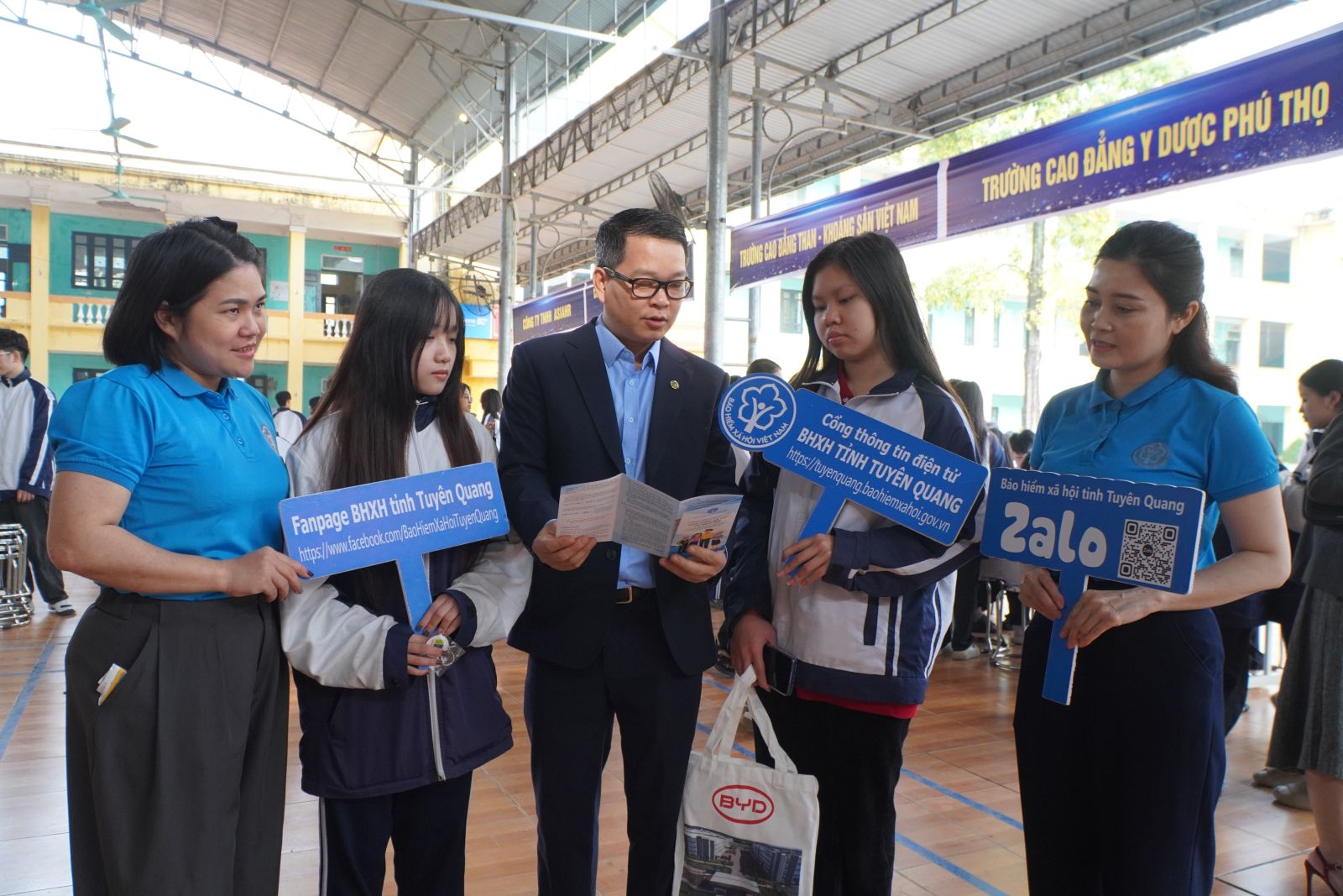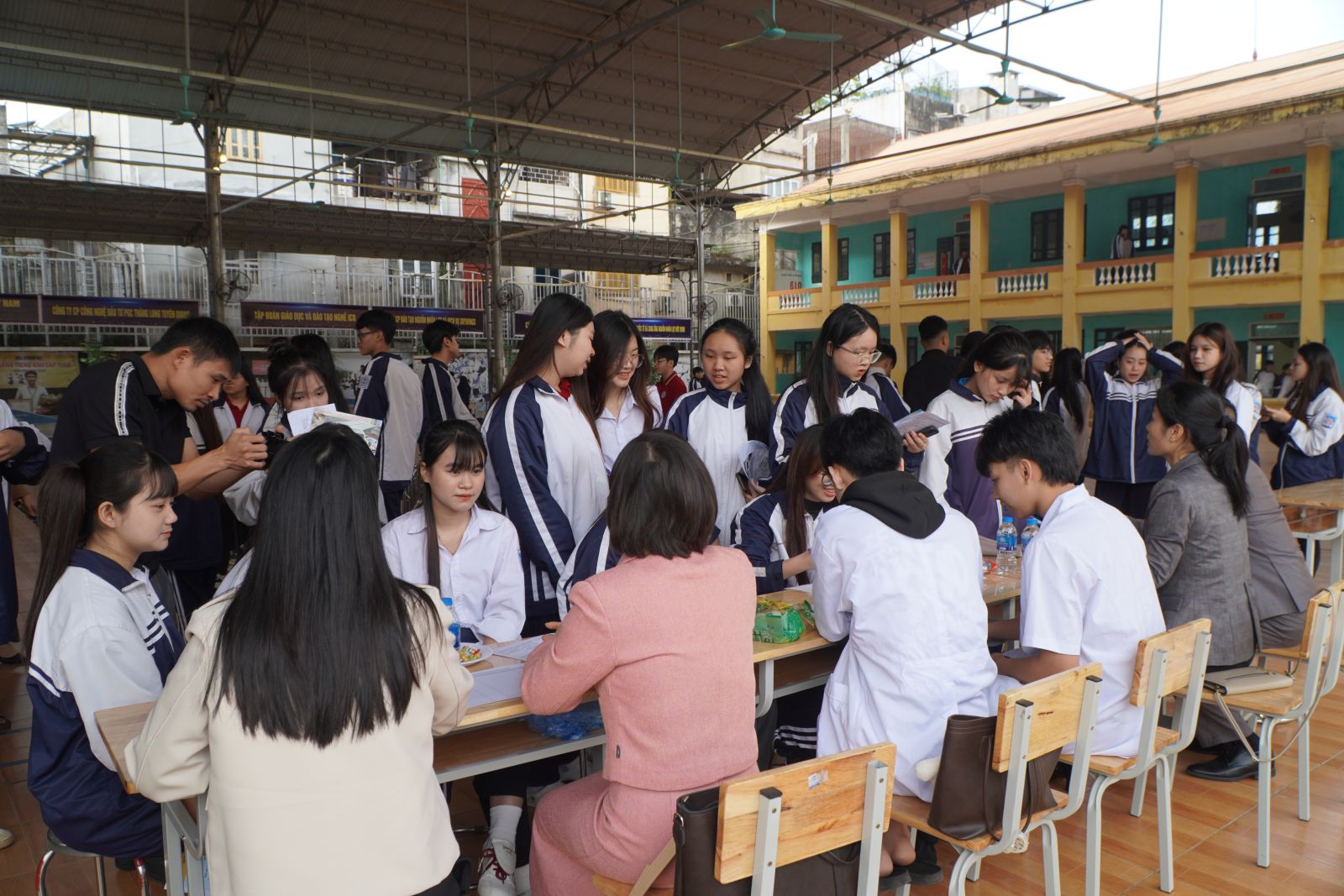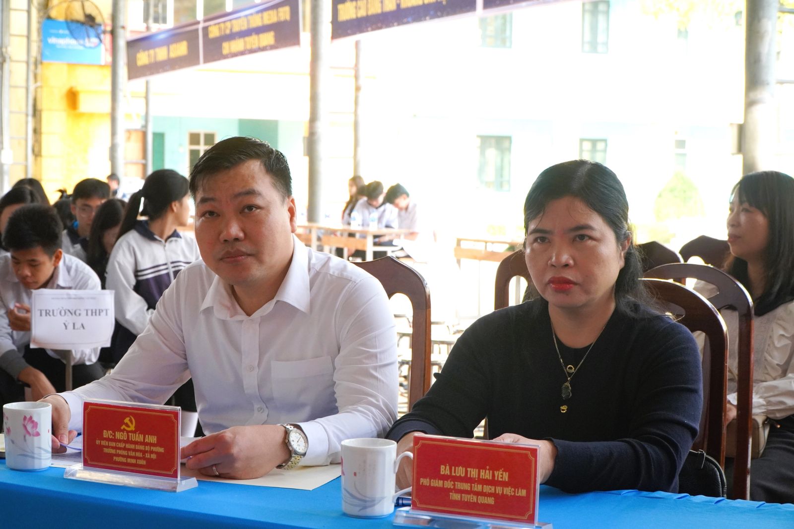Tại Phiên giao dịch, các đơn vị, doanh nghiệp trong và ngoài tỉnh: Công ty cổ phần Đầu tư PGC Thăng Long Tuyên Quang, Tổng Công ty May LGG - Chi nhánh Yên Sơn, Bảo hiểm xã hội tỉnh, Ngân hàng TMCP Lộc Phát, Công ty TNHH Điện tử BYD Việt Nam, Công ty cổ phần Đầu tư quốc tế và cung ứng nguồn nhân lực Đức Minh, Công ty TNHH Asiahr, Trường Cao đẳng Than – Khoáng sản Việt Nam, Trường Cao đẳng Y Dược Phú Thọ… đã trực tiếp giới thiệu thông tin tuyển dụng, tư vấn việc làm, định hướng học nghề, xuất khẩu lao động cho học sinh.